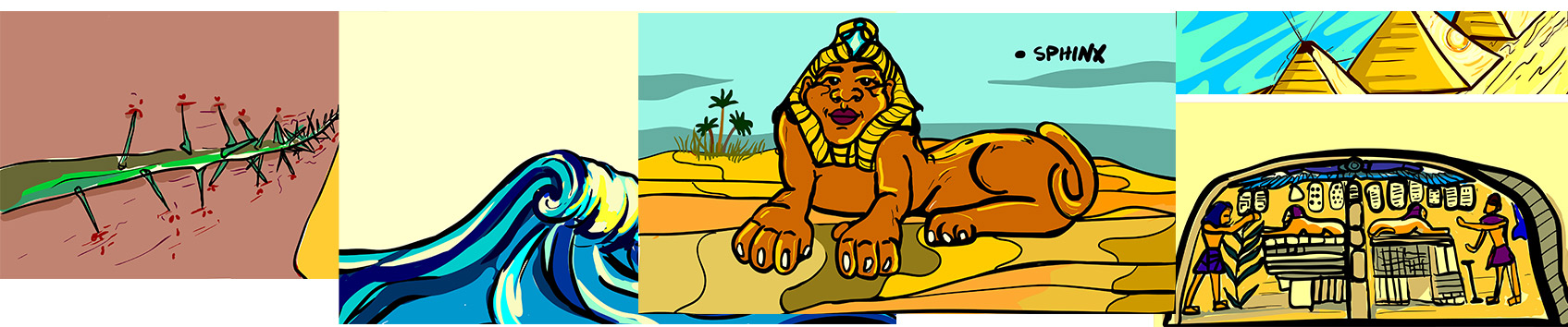 In this Flocabulary video the grammar lesson is in metaphors. The story follows Thutmose IV's quest of discovery to gain the knowledge to become the next pharaoh of Egypt. As depicted by the hieroglyphs written on the tablets of the sphinx, who speaks to him in the desert revealing his true calling.