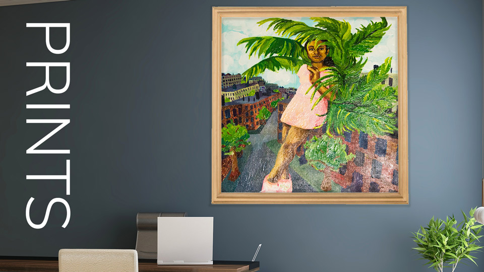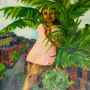 When I was making this painting I replicated an image of myself. I wanted to recall on the divinity of young people. Placing the palm leaves as her wings, she has the prospective to take flight.