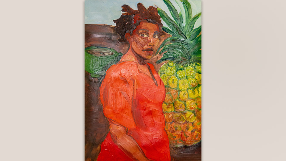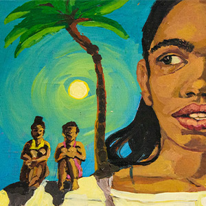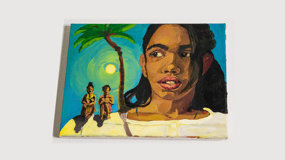This painting represents the line of maternal aunties, as both the present the future and the past. Mia (Niece) is the future and I'm was painting my present tense and looking at the past for inspiration.