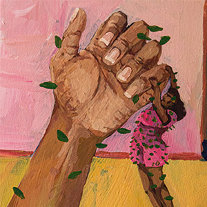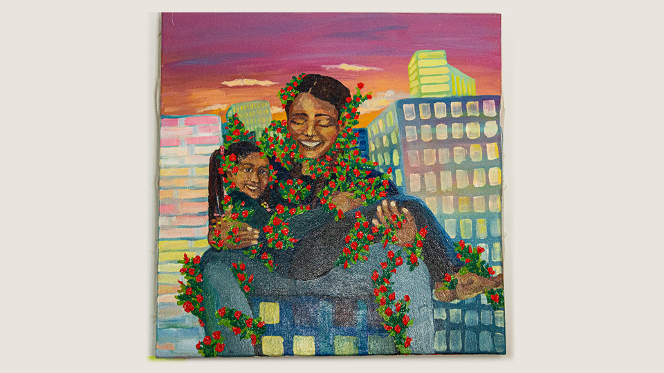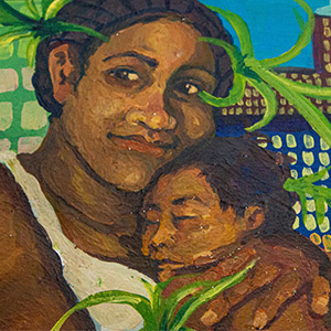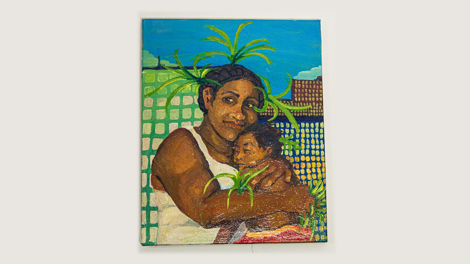 Lorainy is the childhood friend who's kid calls you auntie. It's a portrait of a mother holding her baby to sleep. I've always been interested in depicting young mothers.